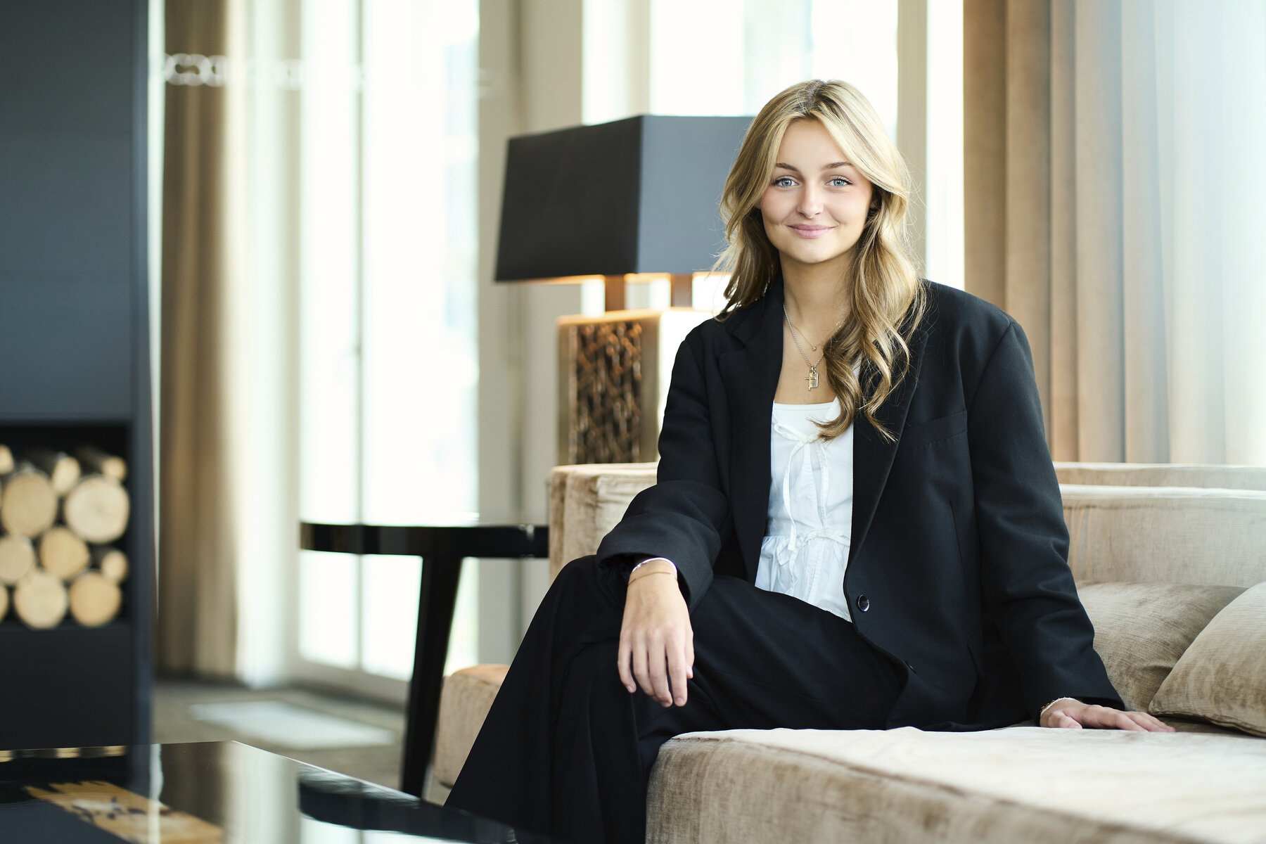 Junge Immobilienmaklerin bei Dahler Company in Hamburg Offen, sympathisch und professionell. Diese Aufnahme zeigt eine Mitarbeiterin von Dahler Company in einer stilvollen Umgebung der Hafencity. Das Bild steht für zeitgemäße Business Fotografie mit persönlichem Bezug und hochwertiger Ausstrahlung.