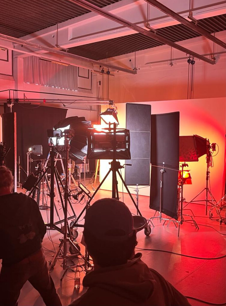 Filmset für eine Werbekampagne – aufwendiges Lichtsetup, professionelle Technik und präzise Planung für cineastische Bildwelten mit Markenwirkung.